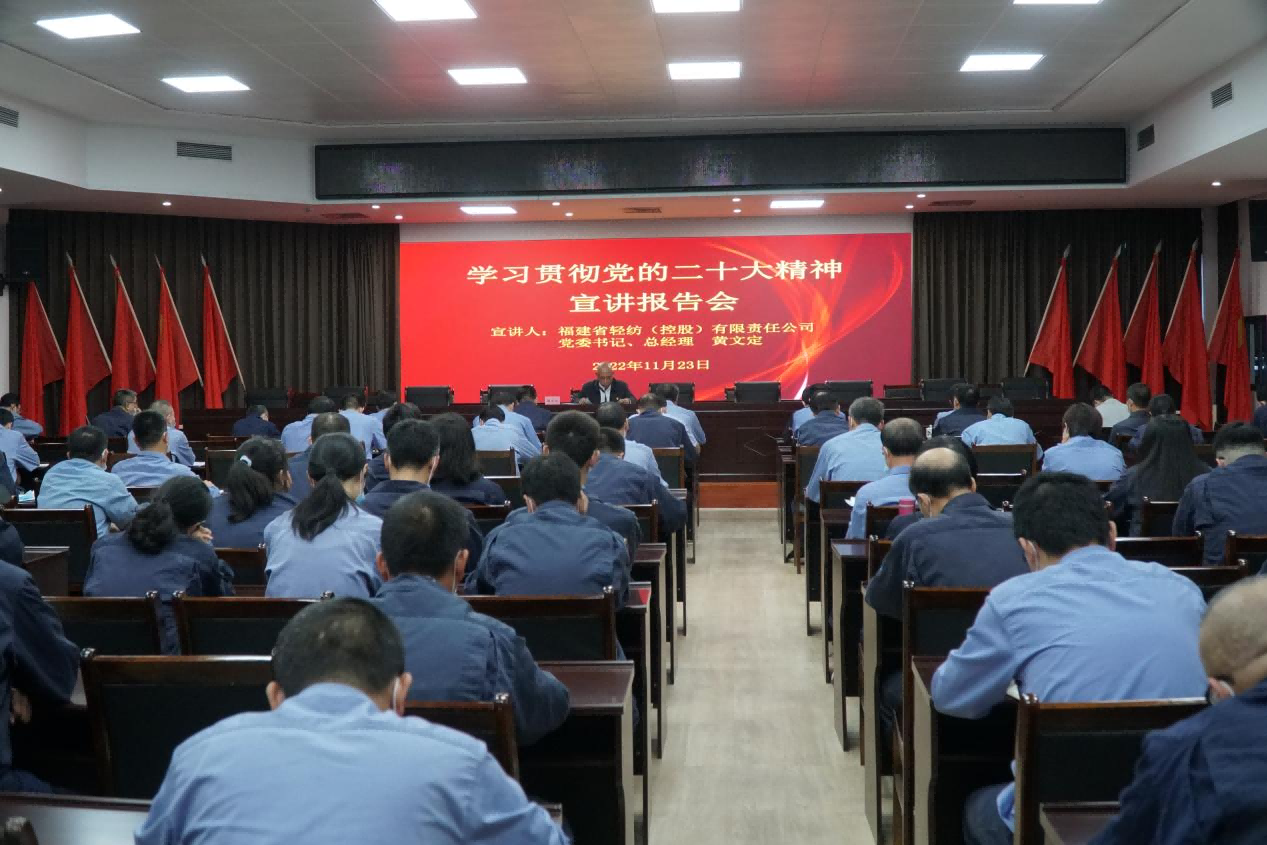 11月23日,福建輕紡黨委書記、總經(jīng)理黃文定到青山紙業(yè)宣講黨的二十大精神。青山紙業(yè)公司領(lǐng)導(dǎo)班子成員、各黨支部書記、熱電廠及黨群支部黨員和部分骨干100多人參加宣講會。