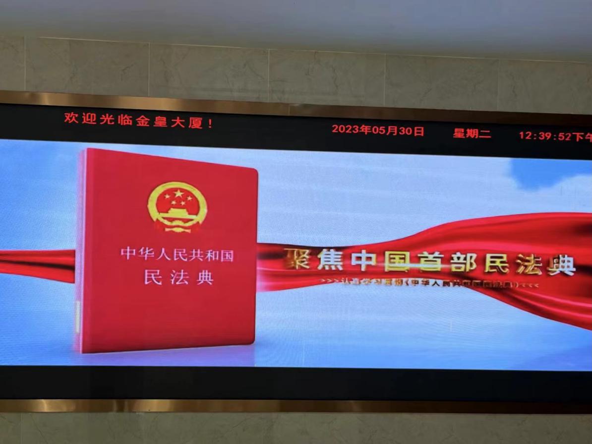 控股公司利用公司網(wǎng)站發(fā)布解讀民法典專題文章,利用LED電子顯示屏滾動(dòng)播放宣傳海報(bào)及宣傳片;發(fā)放民法典宣傳手冊(cè),對(duì)網(wǎng)絡(luò)虛擬財(cái)產(chǎn)、見(jiàn)義勇為、居住權(quán)、高空拋物等進(jìn)行案例和法條普法。