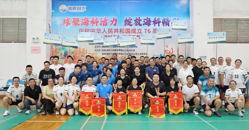 海峽科化公司舉辦慶祝新中國成立76周年暨第三屆“海科工會(huì)杯”職工氣排球賽。賽場上,12支代表隊(duì)運(yùn)動(dòng)員們?nèi)σ愿?、默契配合,在攻防交替中充分彰顯“協(xié)同拼搏、追求卓越”的海科精神,生動(dòng)詮釋了“上下同欲、風(fēng)雨同舟”的團(tuán)隊(duì)理念。大家紛紛表示,將把賽場上的激情與活力延續(xù)到工作中,以飽滿的熱情為推動(dòng)海峽科化公司高質(zhì)量發(fā)展注入新動(dòng)力。