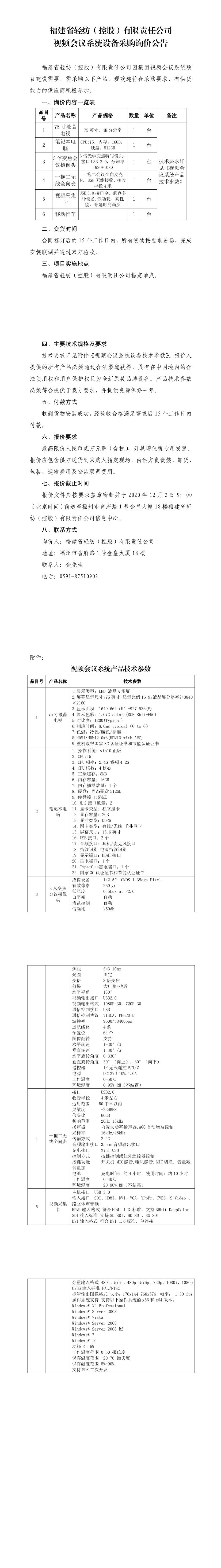 福建省輕紡(控股)有限責(zé)任公司 視頻會(huì)議系統(tǒng)設(shè)備采購(gòu)詢(xún)價(jià)公告