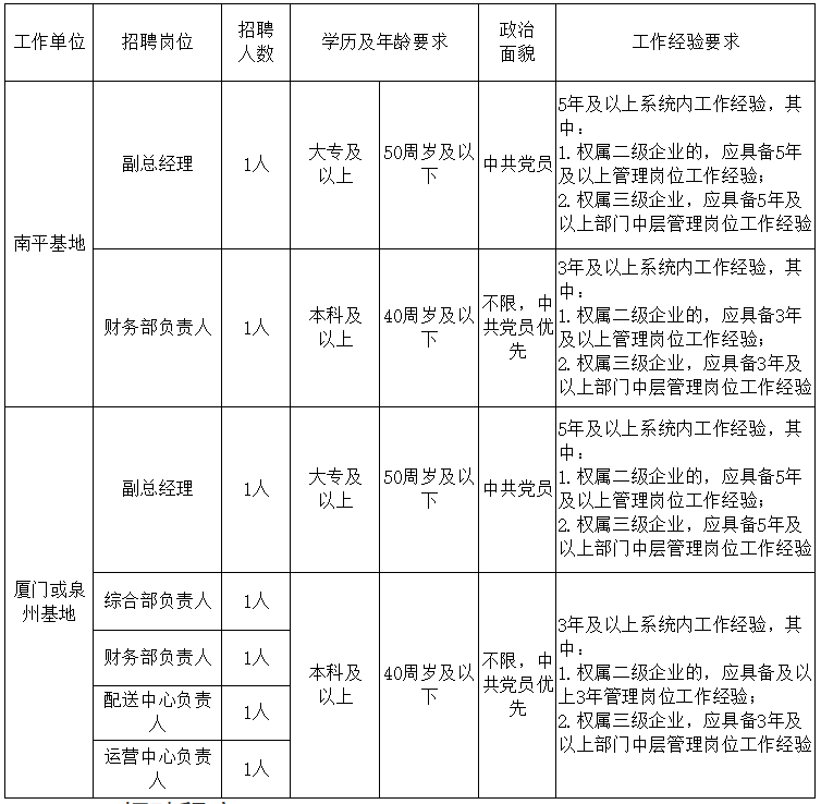 因業(yè)務(wù)發(fā)展需要,現(xiàn)面向福建省輕紡控股系統(tǒng)內(nèi)公開(kāi)選聘基地管理人員。