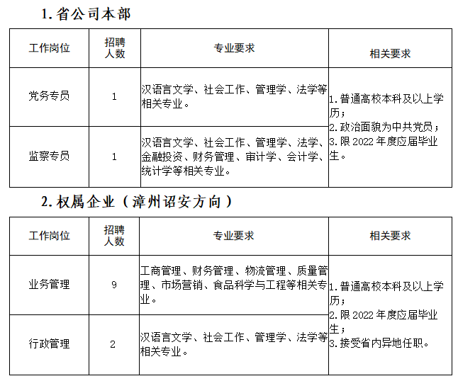 為滿足業(yè)務(wù)發(fā)展的需要,擬面向社會公開招聘省公司本部及權(quán)屬企業(yè)工作人員,現(xiàn)將有關(guān)招聘事項公告如下: