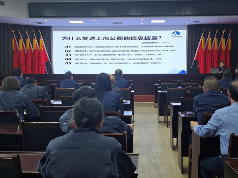 根據(jù)《中華人民共和國證券法》《上市公司信息披露管理辦法》及上海證券交易所上市公司自律監(jiān)管指引等相關(guān)制度,青山公司總經(jīng)理助理、證券事務(wù)代表徐慧镕以《注冊制下上市公司信息披露》為題,結(jié)合公司實際,就為什么要進行信息披露;如何踐行注冊制下的信披合規(guī)要求;如何識別信披風(fēng)險事項;公司股東會、董事會、經(jīng)理層和相關(guān)業(yè)務(wù)部門人員的職責(zé)界限、法律責(zé)任及公司關(guān)聯(lián)交易等四個方面進行深入淺出地講解。