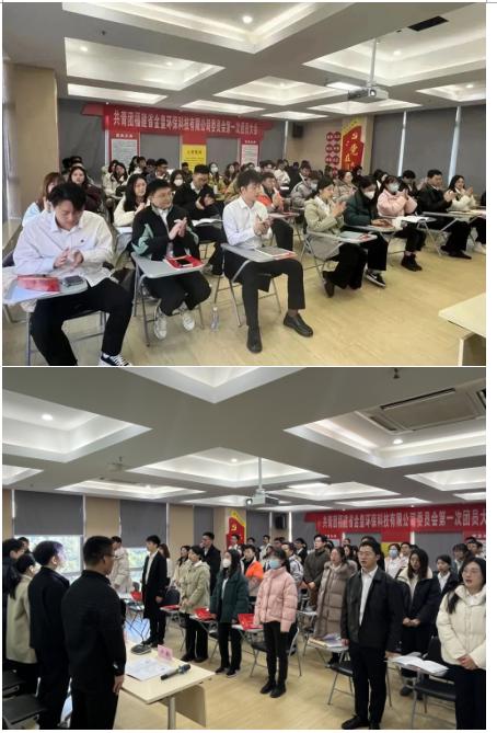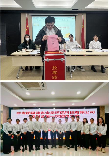 金皇環(huán)保黨委書記、董事長、總經(jīng)理邱宇,黨委委員、紀(jì)委書記陳雪珍以及福建輕紡團(tuán)委代表盧蔚出席大會(huì),黨建工作部主任張喚民、第一屆團(tuán)總支全體委員及團(tuán)員參加會(huì)議。