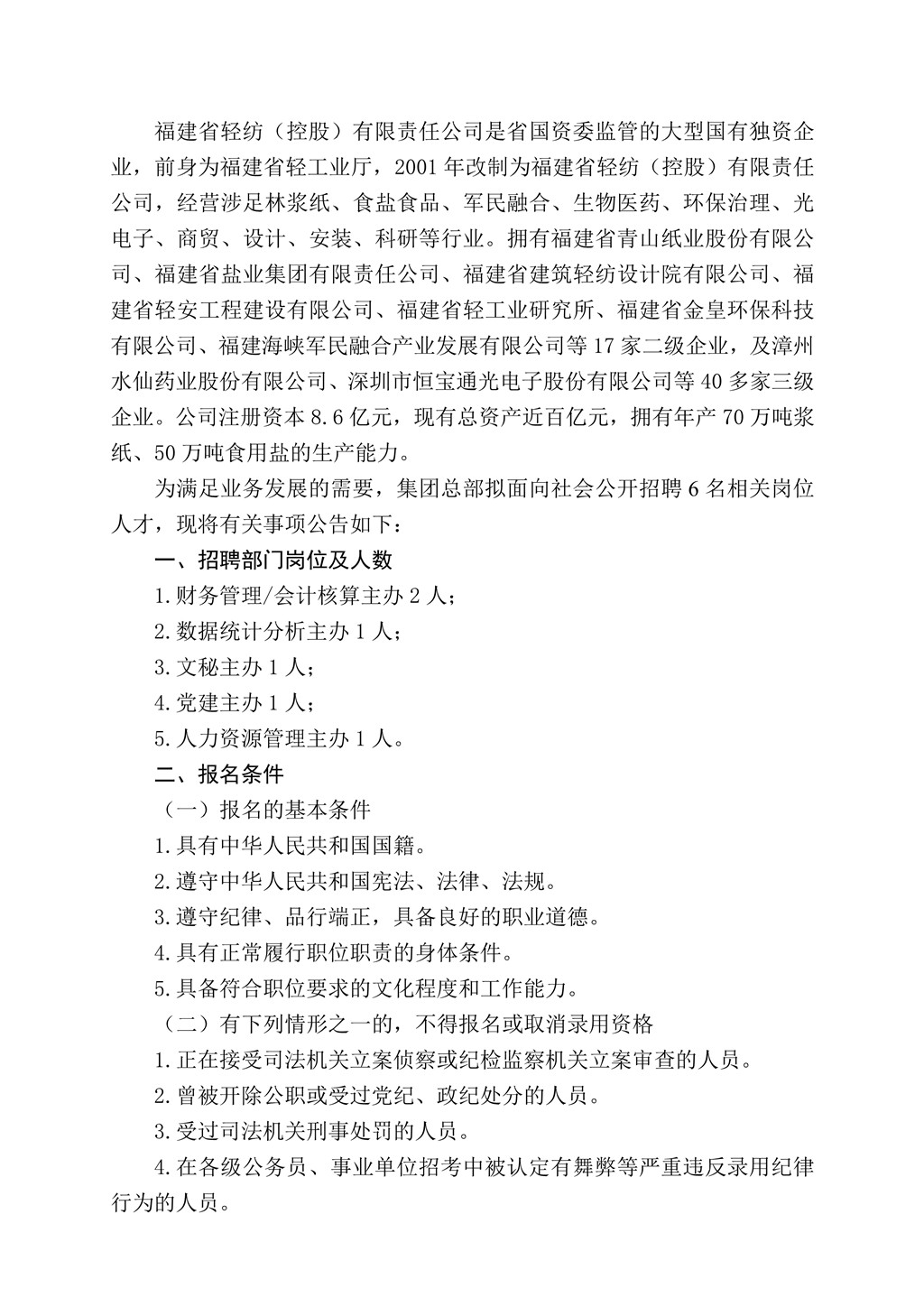 福建省輕紡(控股)有限責(zé)任公司 2023年度秋季對外公開招聘公告